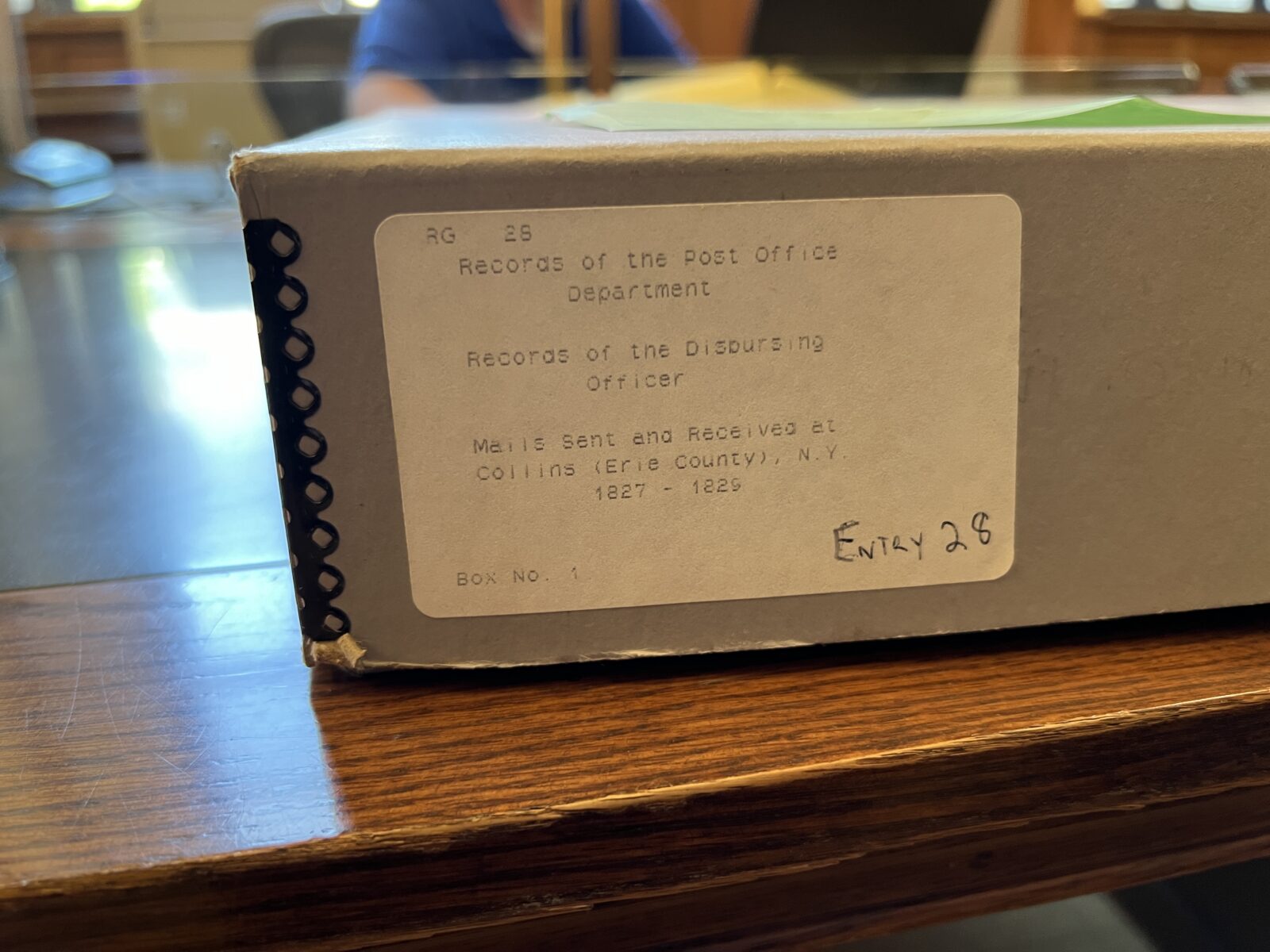 PI 168 Description: 28. RECORD OF MAILS SENT AND RECEIVED AT THE COLLINS, ERIE COUNTY, N.Y., POST OFFICE. 1827-29. 1…