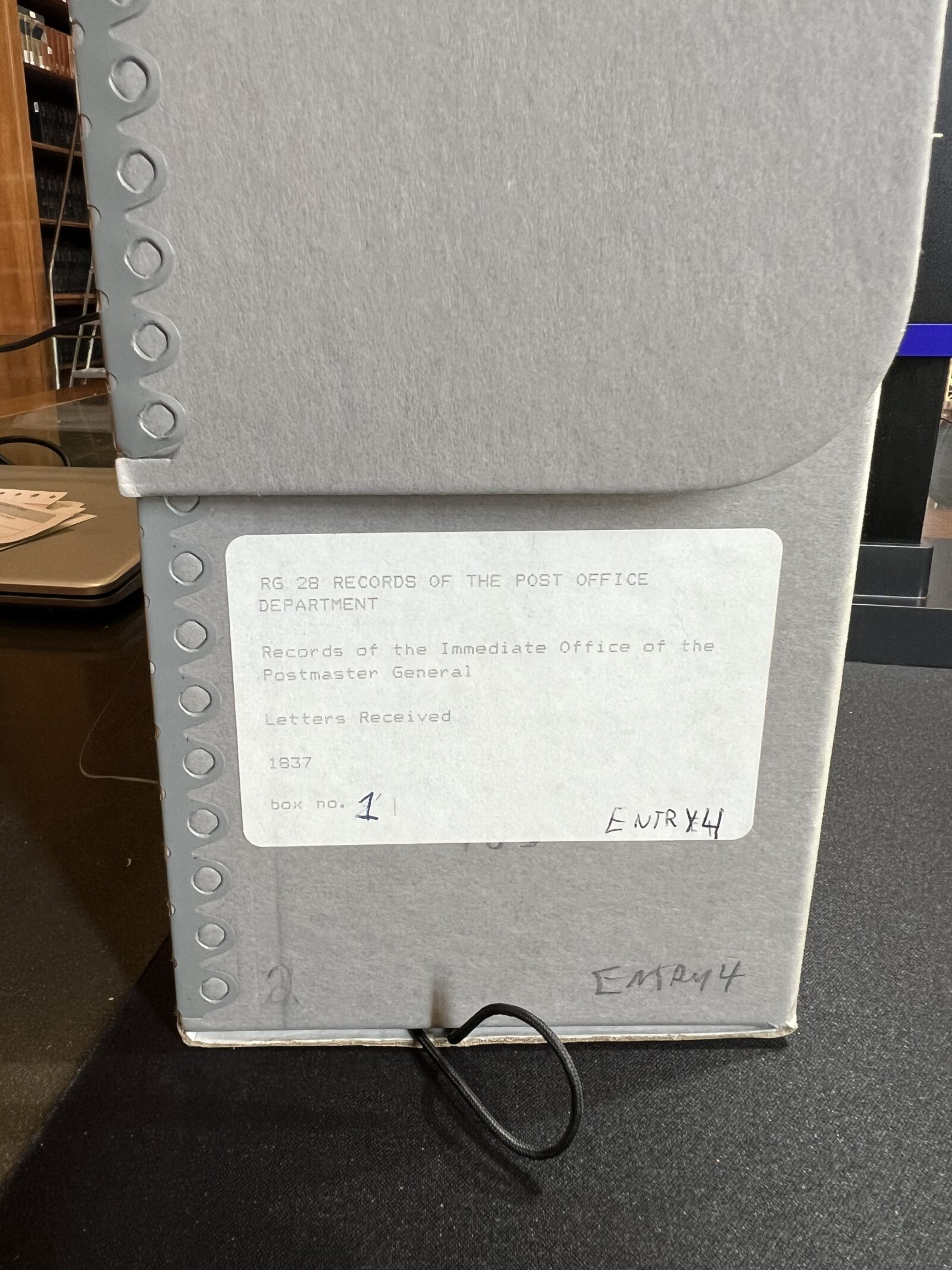 PI 168 Description: 4. LETTERS RECEIVED. 1837-43. 1 ft. Relate to quarterly accounts of postmasters; appointments of postmasters; postmasters’ salaries;…